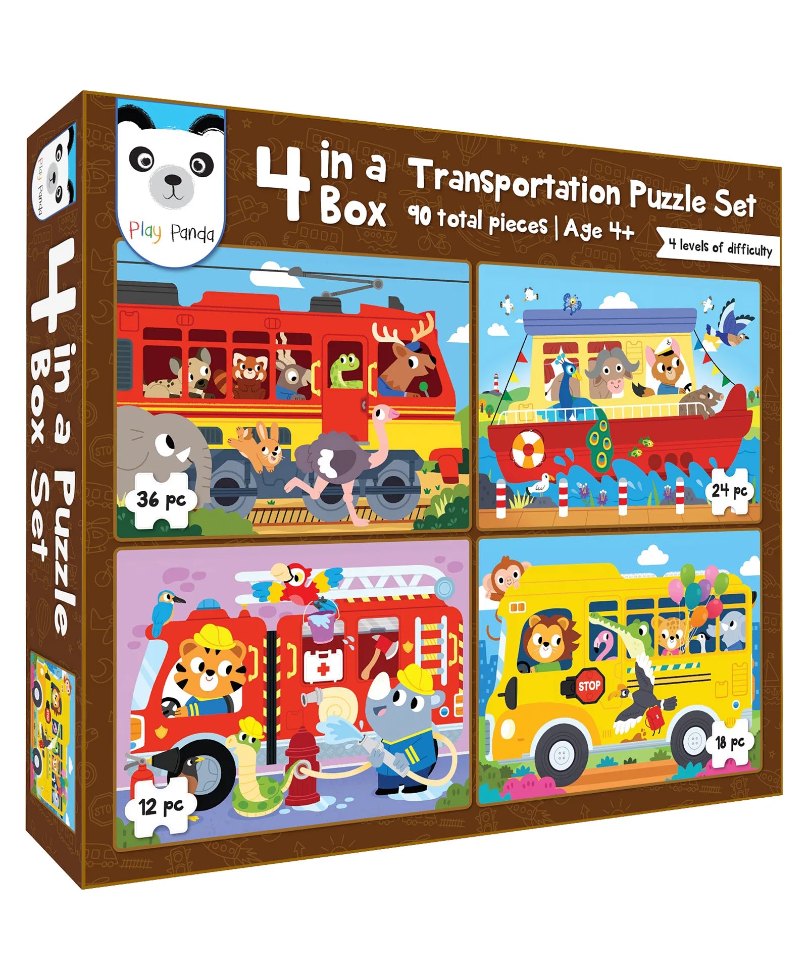 Play panda 4-in-a-box transportation puzzle set – 90 pieces, 4 levels of fun (age 4+)