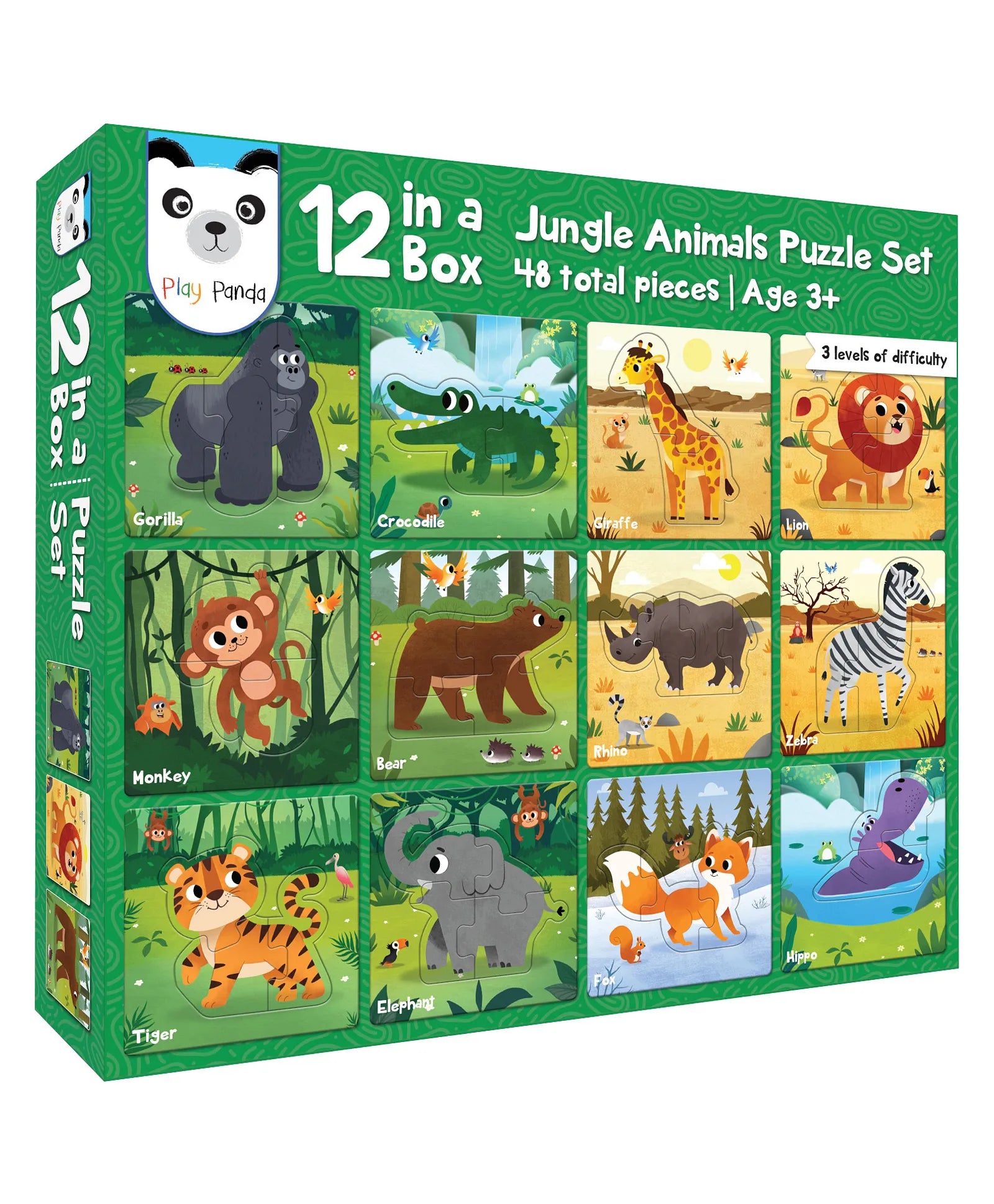 12-in-a-Box Jungle Animal Puzzle Set – 48 Pieces for Kids Ages 3+