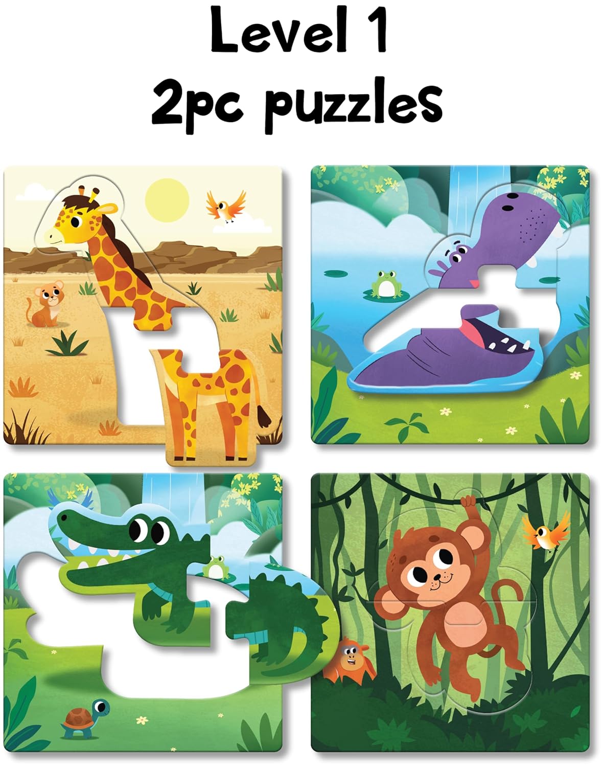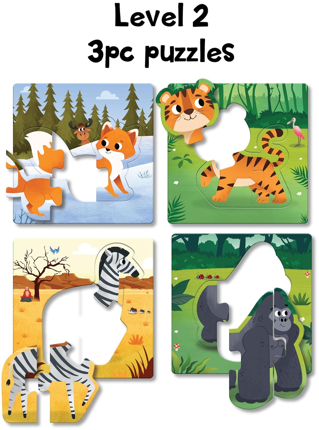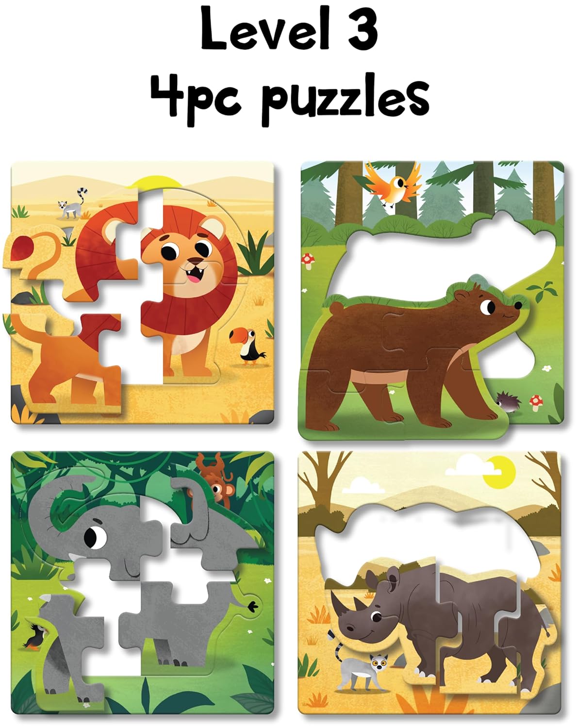 12 Adorable Animal Puzzles – Includes gorilla, lion, elephant, giraffe, zebra, and more.