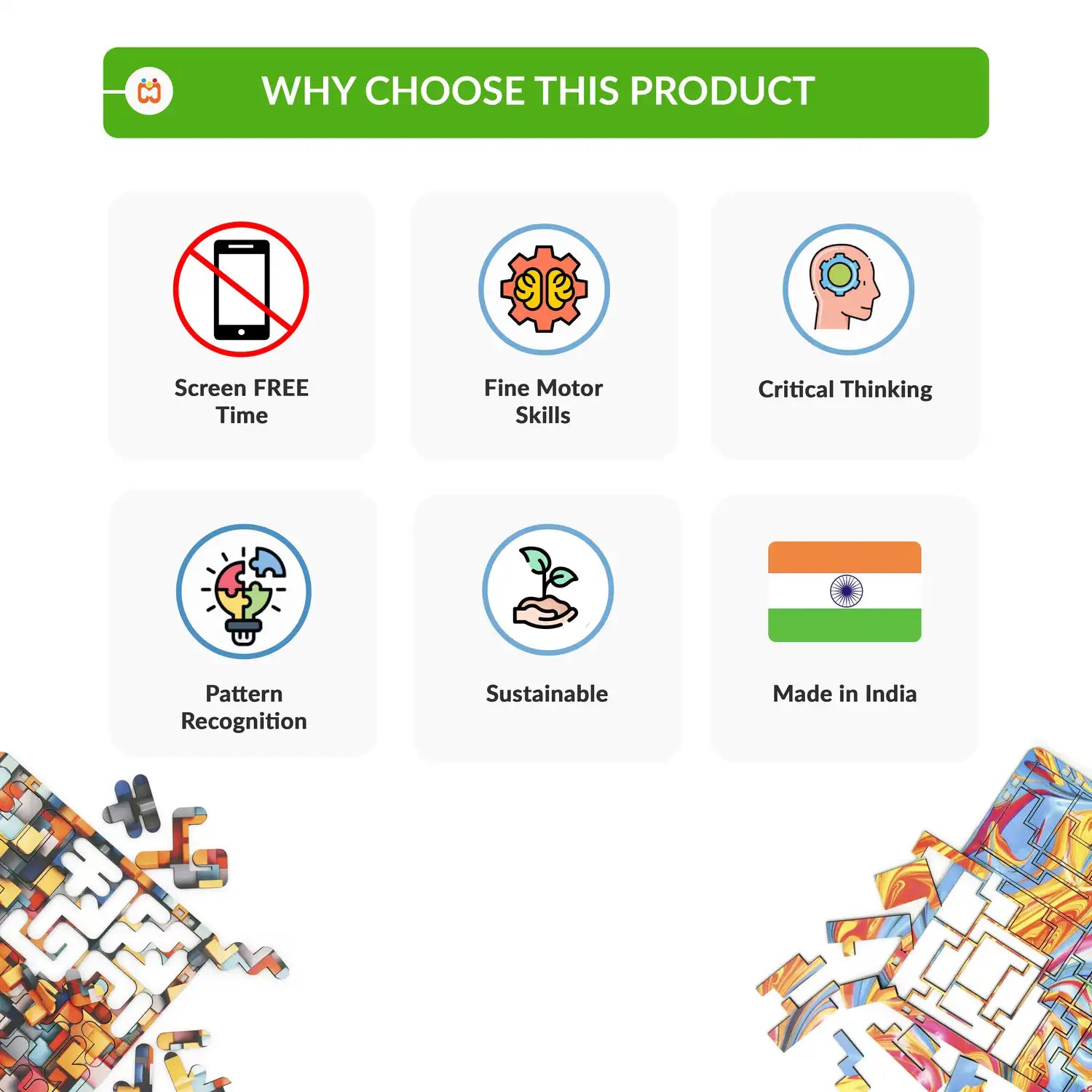 Each piece is made of smooth, high-quality wood with vibrant, eye-catching prints that captivate kids and adults alike. It’s more than just a puzzle—it’s a brain teaser that helps improve problem-solving, critical thinking, and spatial reasoning skills.