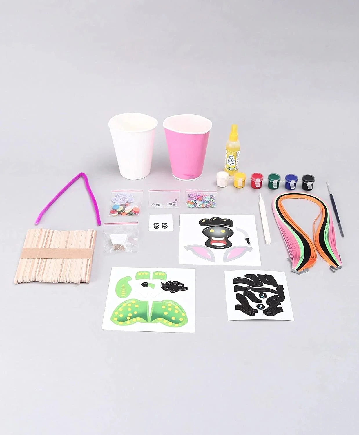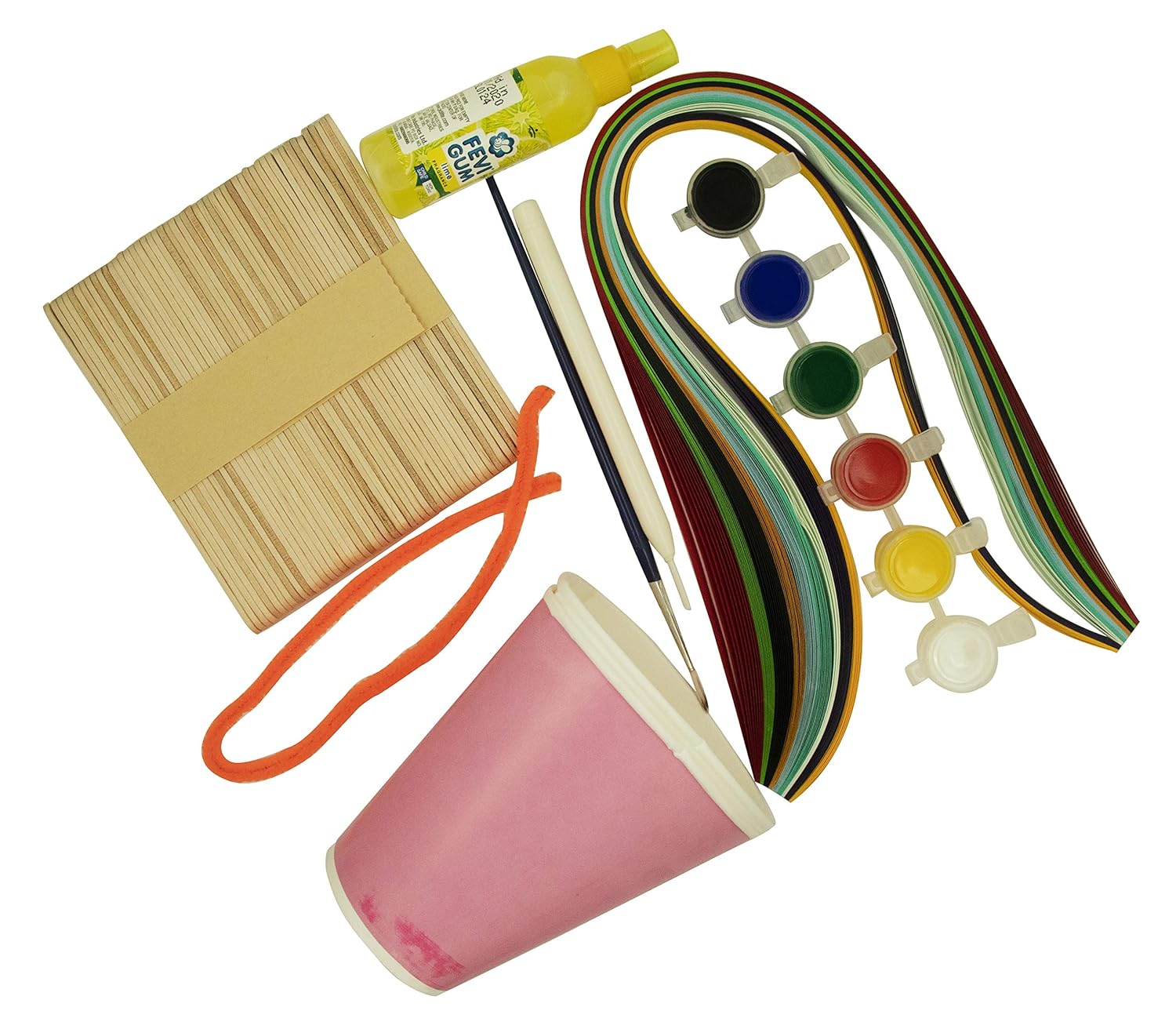 All-in-One Kit – Comes with paints, stickers, paper strips, glue, popsicle sticks, and other essential craft supplies.