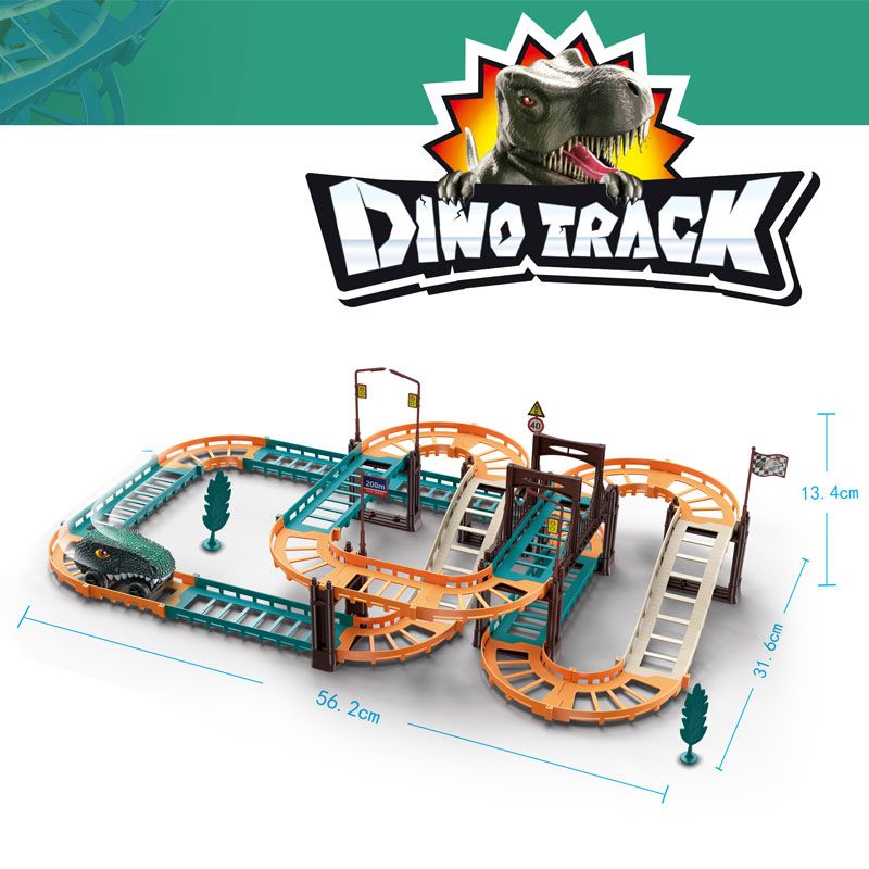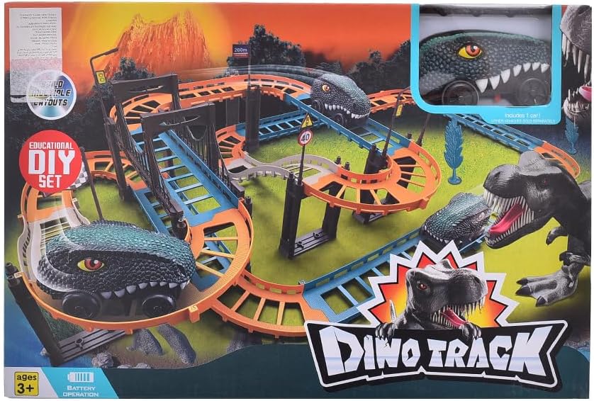 Unleash prehistoric adventure and fast-paced fun with this dynamic Dino Track racing set! Designed for young explorers, this battery-operated DIY track features a fierce dinosaur-themed car and an exciting multilevel racing track to keep kids entertained for hours.
