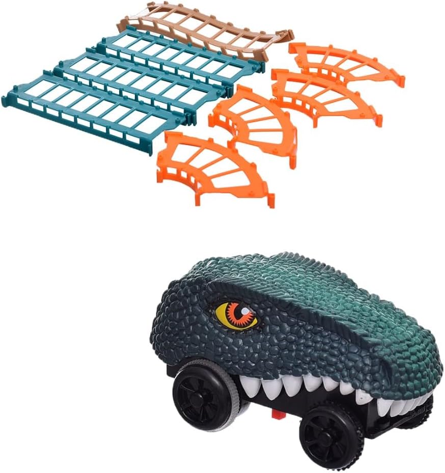 • πŸ”‹ Battery Operated Car: Watch the dino-car zoom along the track, over bridges and through turns, powered by a single battery.