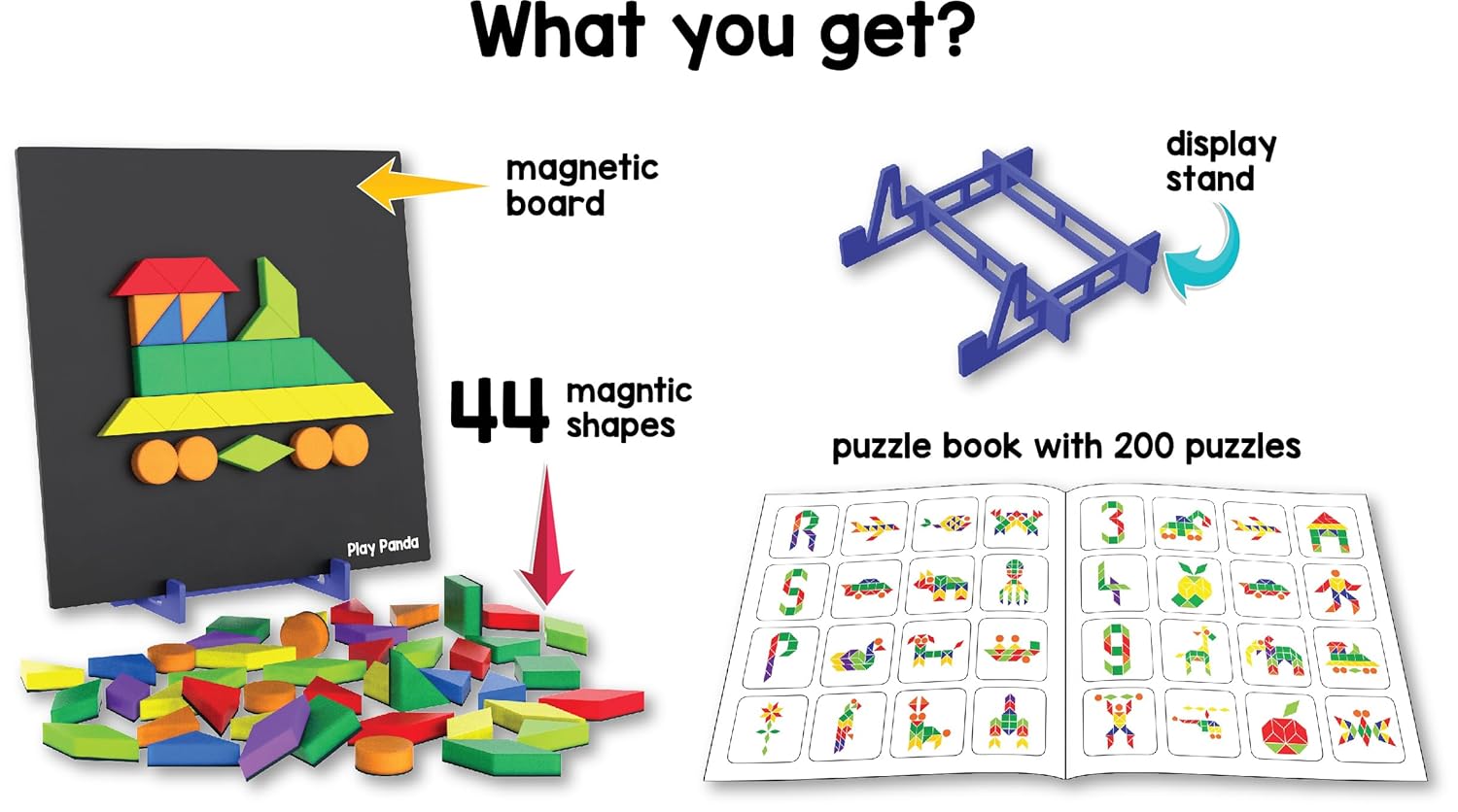 Encourage creativity and problem-solving with the Fun Magnetic Shapes Puzzle Set! Featuring 44 colorful magnetic shapes and a magnetic board, kids can create over 500 unique objects, animals, and patterns while enjoying a mess-free activity.
