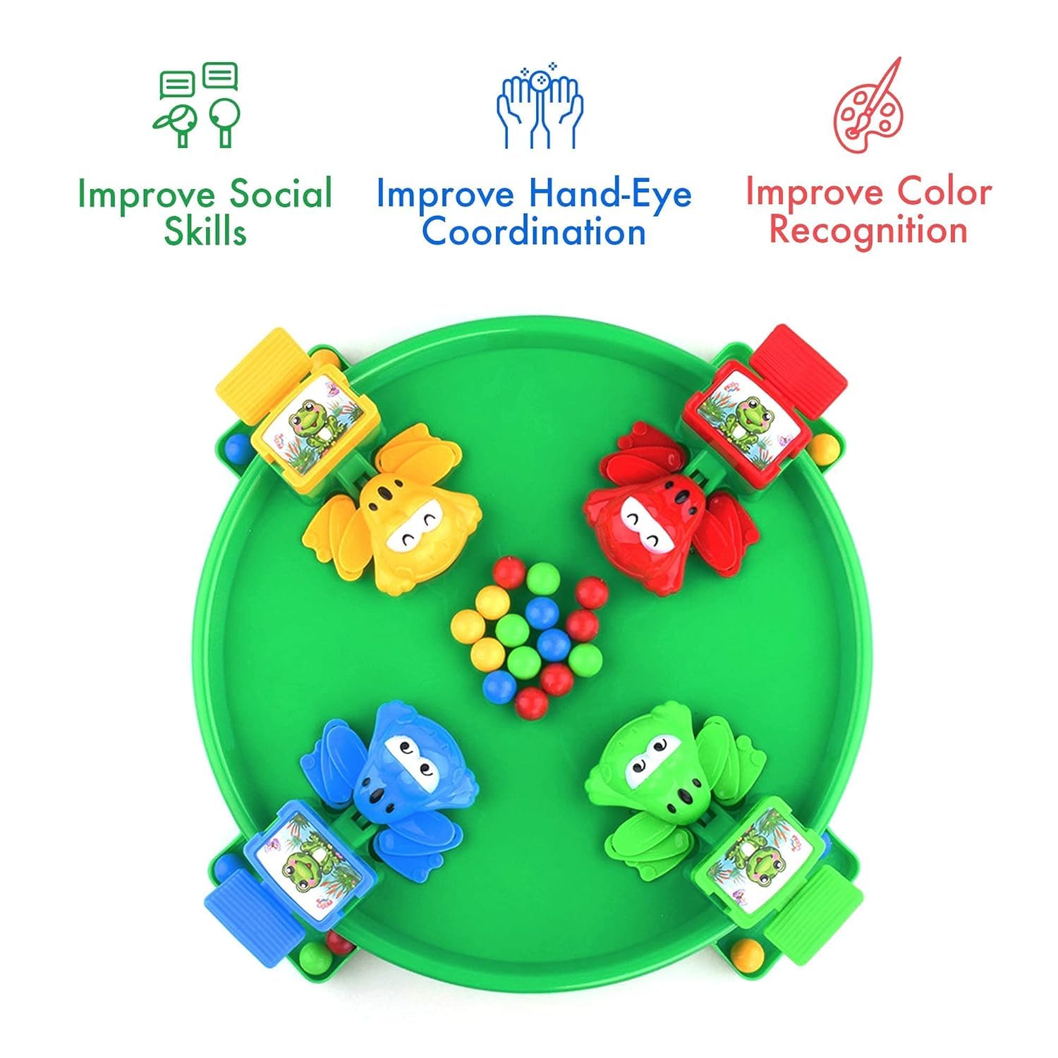 Get ready for endless fun with the Hungry Frog Feeding Frenzy Game! Perfect for 2β4 players, this action-packed toy challenges kids to press and catch as many balls as they can with their jumping frogs. Great for parties, family nights, and playdates!