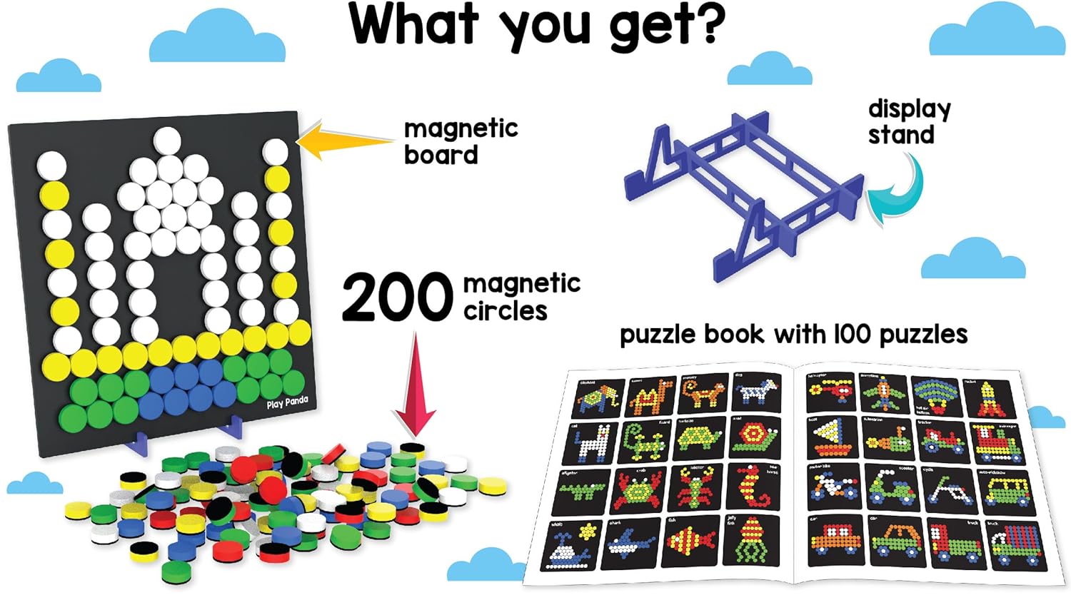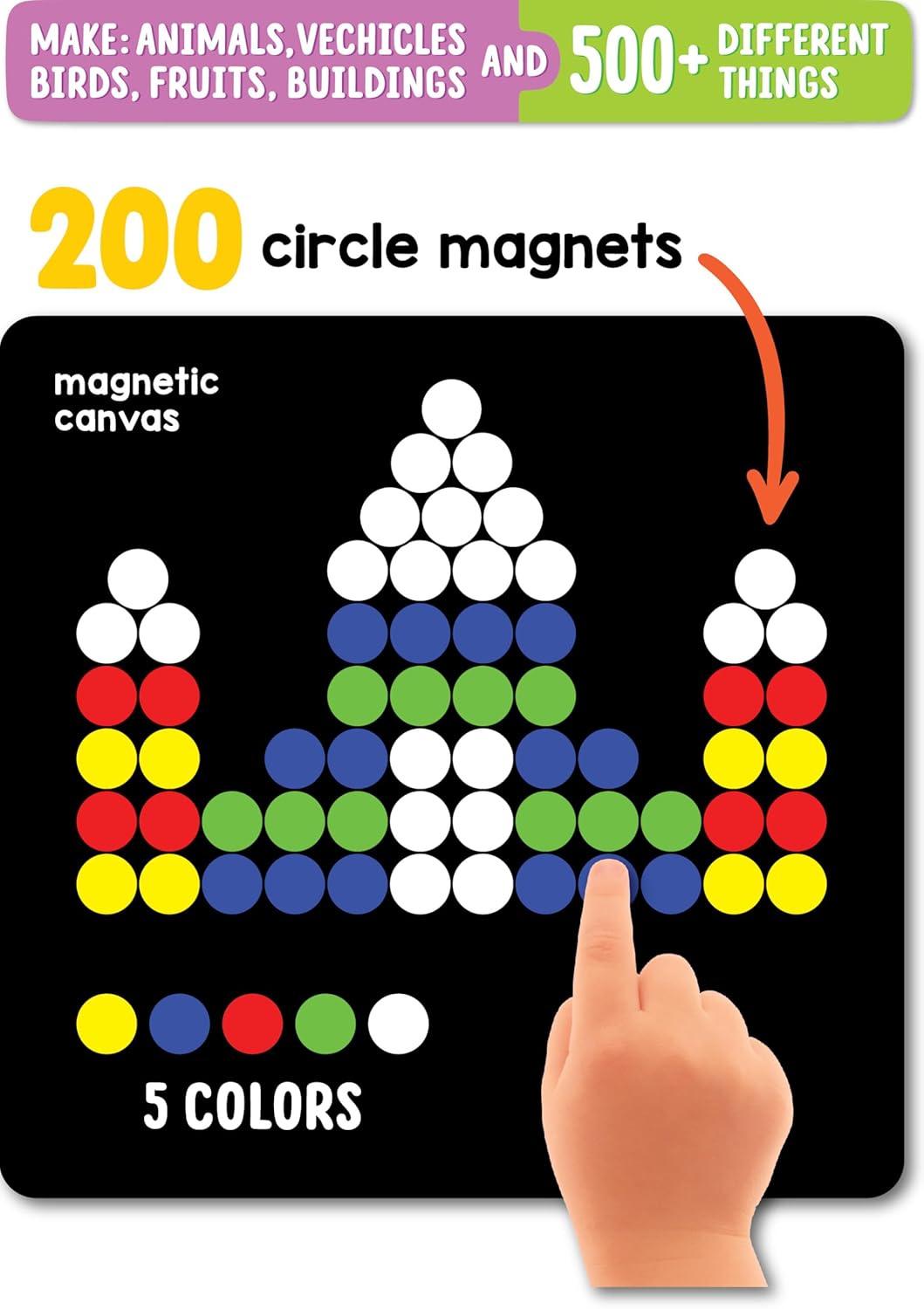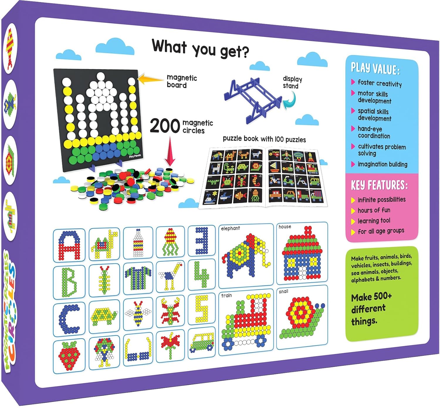 Unlock creativity with the Magnetic Puzzles Circles Set, an award-winning concept designed for kids to learn and play at the same time! With 200 colorful circle magnets and 100 puzzle designs, children can create over 500 unique patterns while developing key cognitive skills.