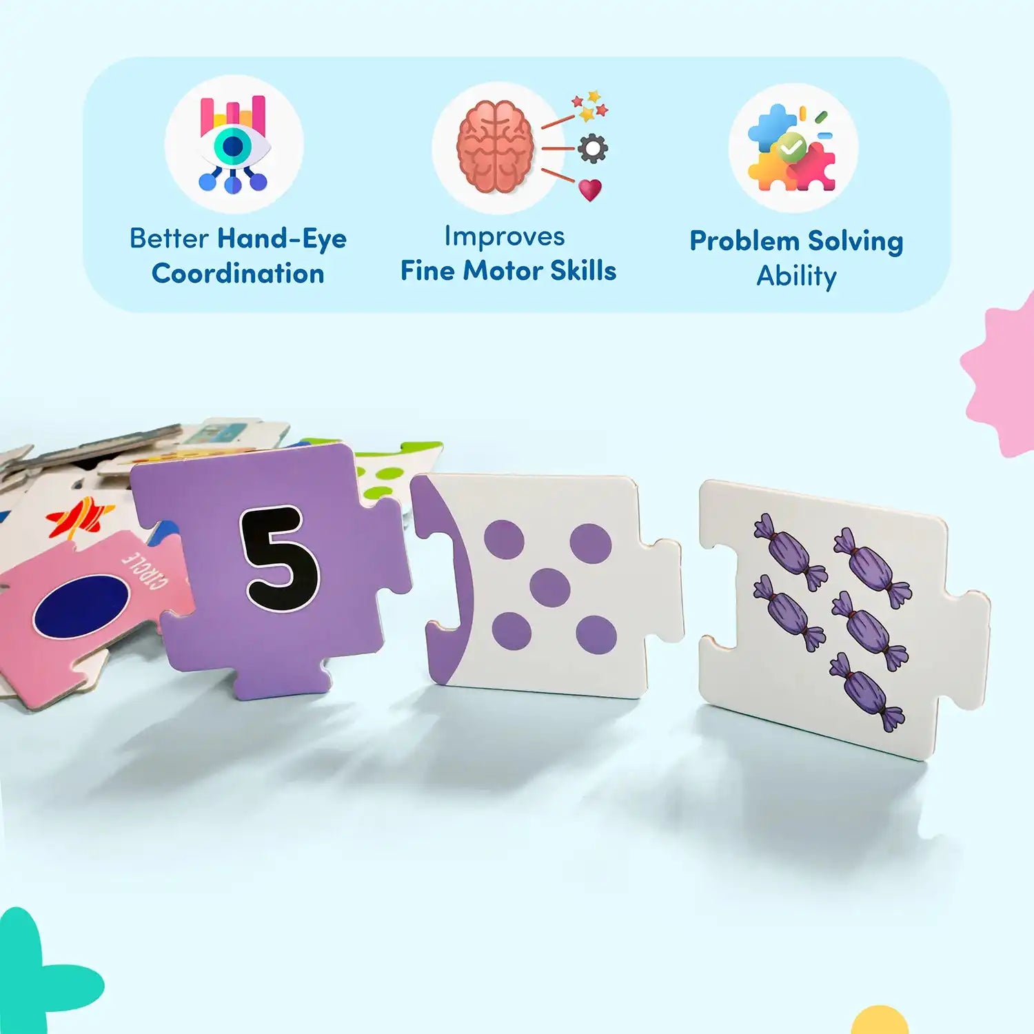 Skill Development: Encourages cognitive skills, hand-eye coordination, visual memory, and early math readiness.