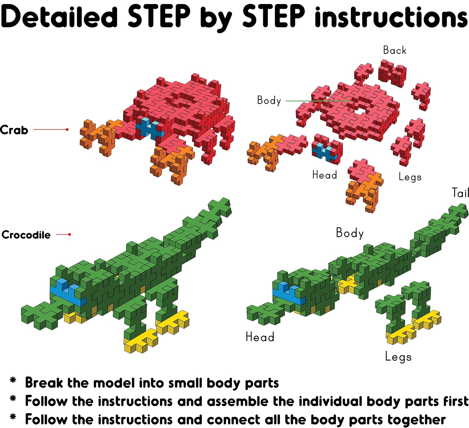 Play Panda Fixi Bricks - Build Your Own 3D Crab & Crocodile | 120+ Pieces STEM Construction Set for Kids (Ages 6–99)