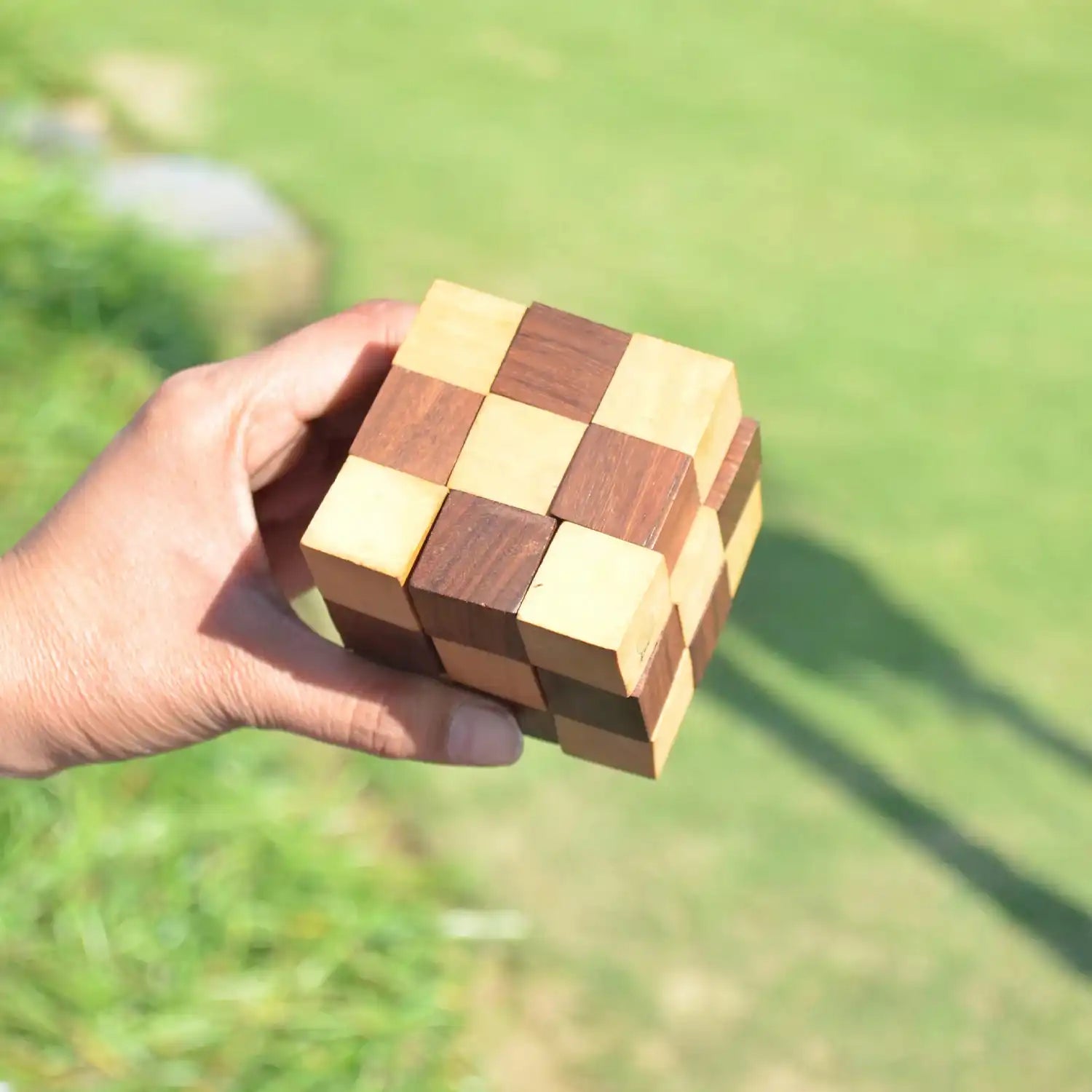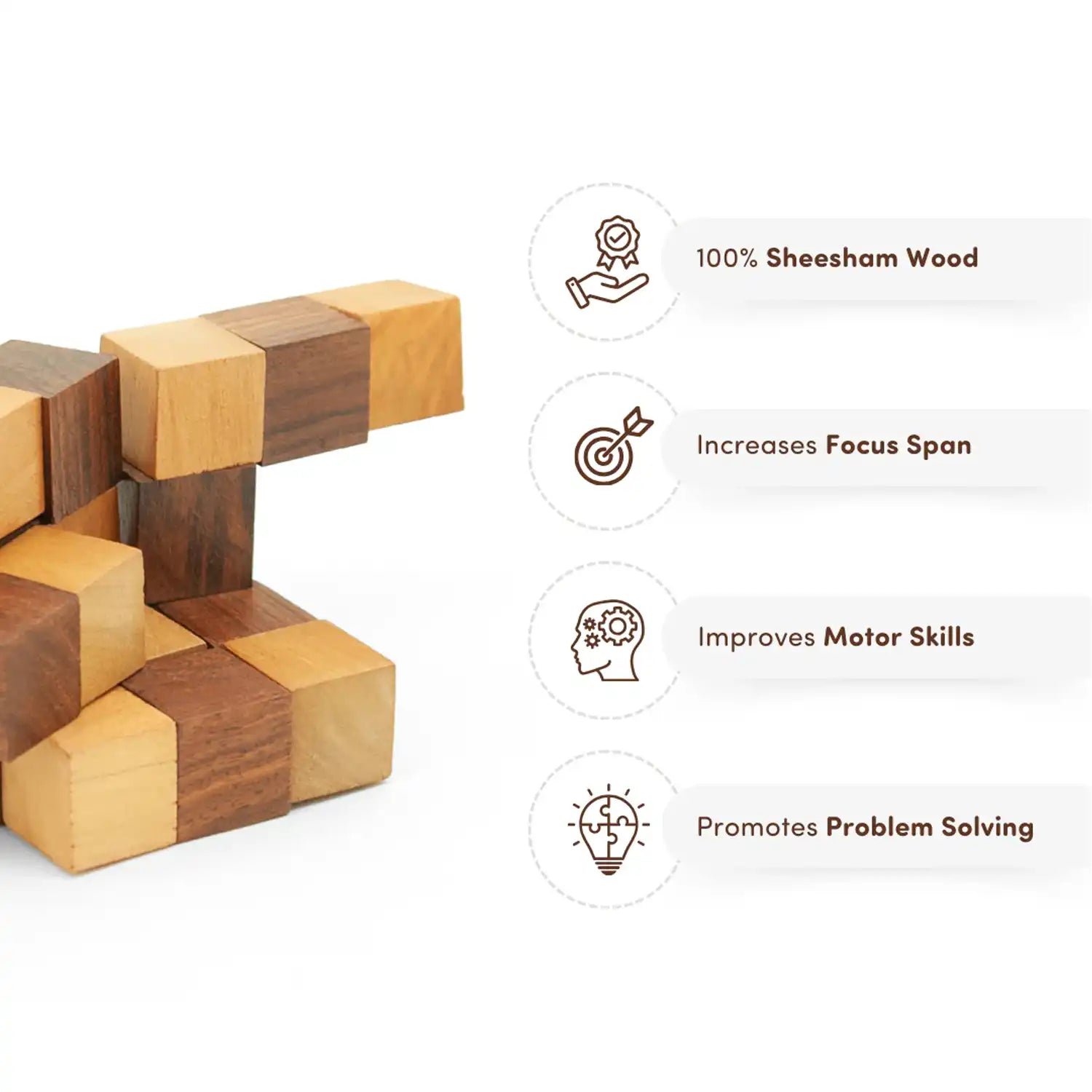 Snake Cube Puzzle 2.5" | 3X3 Wooden Wooden Brain Teaser Game for Kids 6+ Years | Develop Problem-Solving Skills
