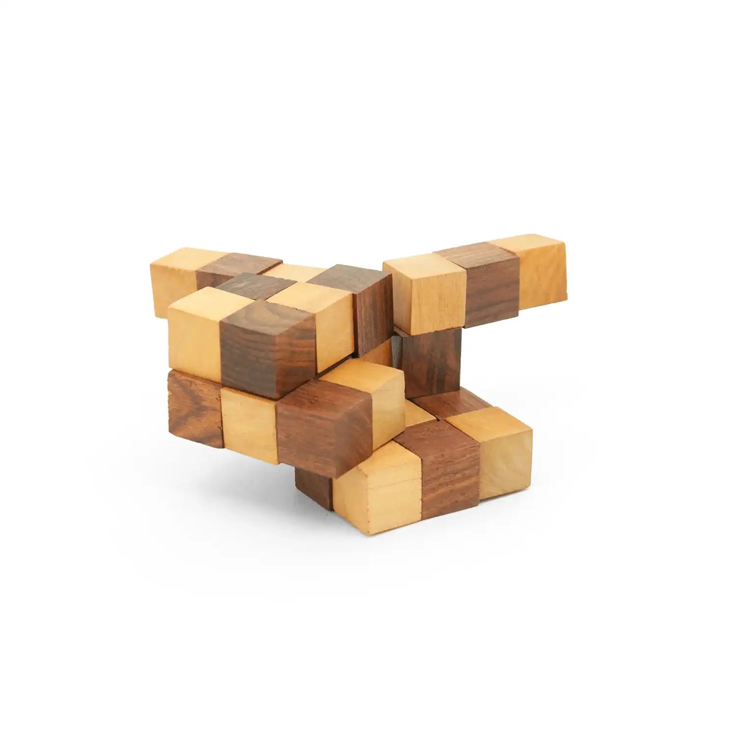 Challenge young minds with this 3x3 wooden Snake Cube puzzle. A fun brain teaser that builds problem-solving skills for kids 6+ and curious minds alike.