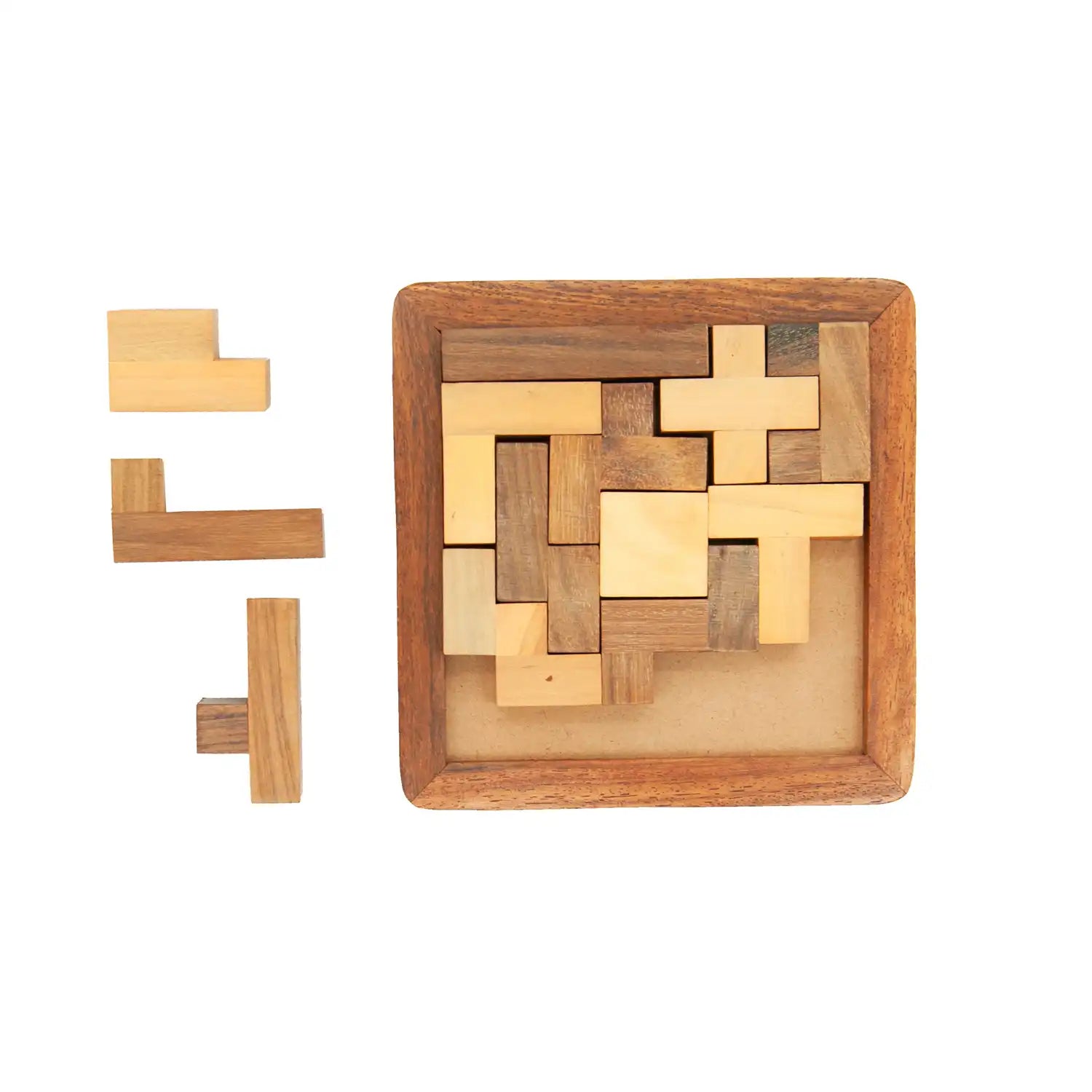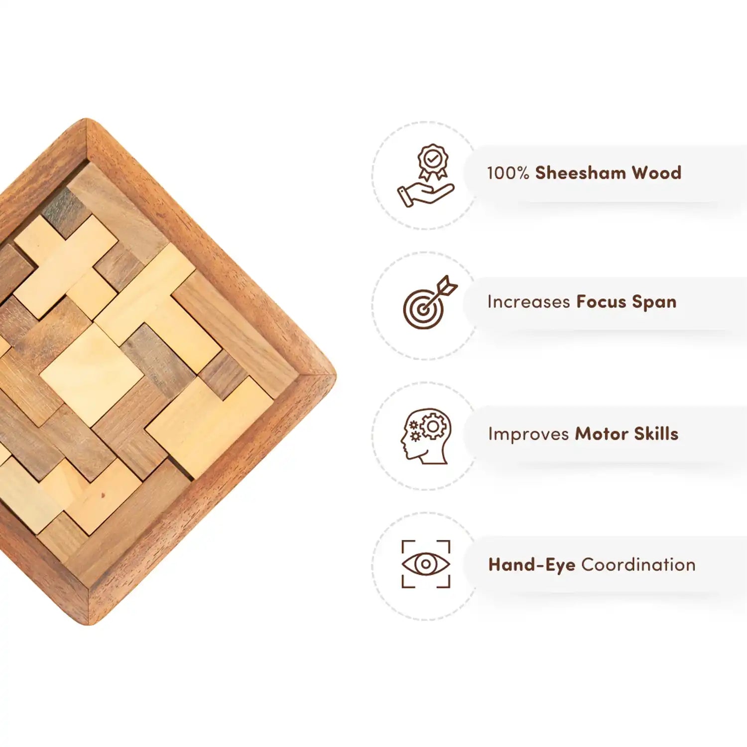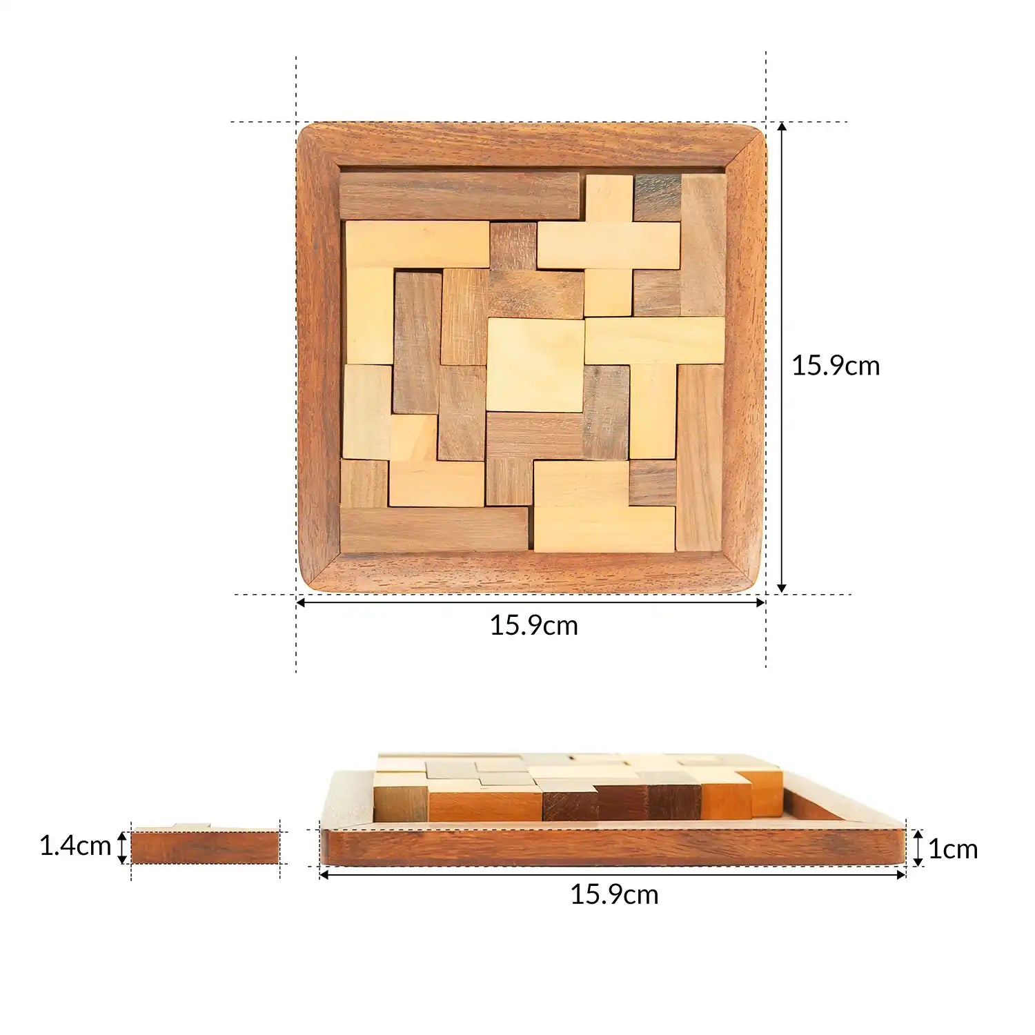 Stimulate the mind and sharpen logic skills with this elegant wooden puzzle! Crafted from high-quality, eco-friendly wood, this brain teaser is both a fun game and a stylish decor piece. With a compact 15.9 cm frame packed with uniquely shaped blocks, it's perfect for solo challenges or family bonding time.